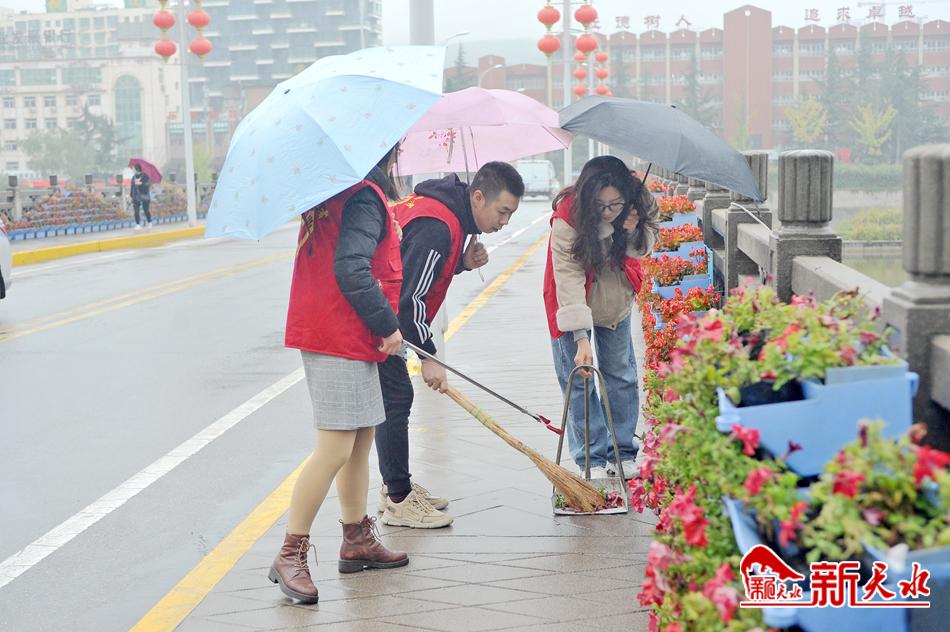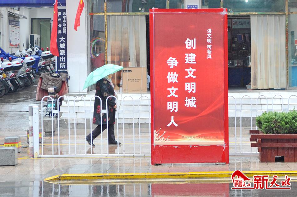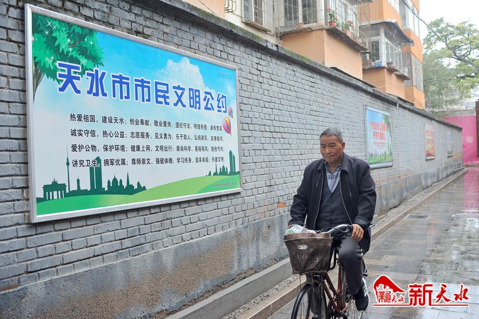 连日来阴雨连绵,参与创建全国文明城市的志愿者坚持清扫街道、劝导行人遵守交通秩序;沿街商铺的店主自觉打扫门前道路,擦干净店面门窗;非机动车与机动车在规定停车点停放整齐;背街小巷路面、墙面整洁,线缆整齐划一,“城市蜘蛛网”“城市牛皮癣”得到有效整治……如今的天水,处处奏响着文明的乐章。