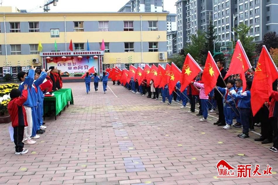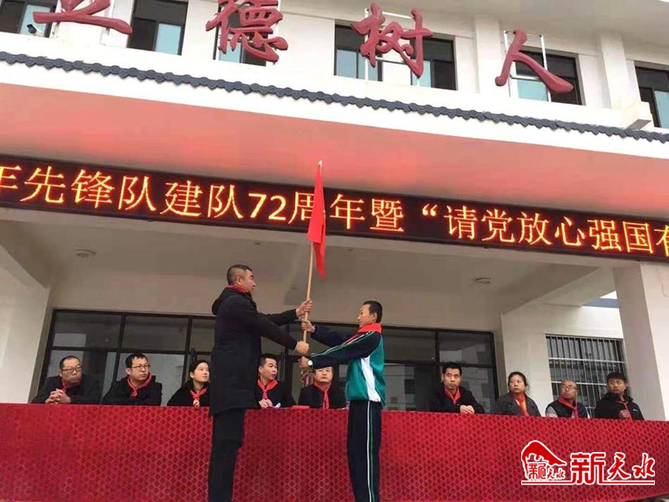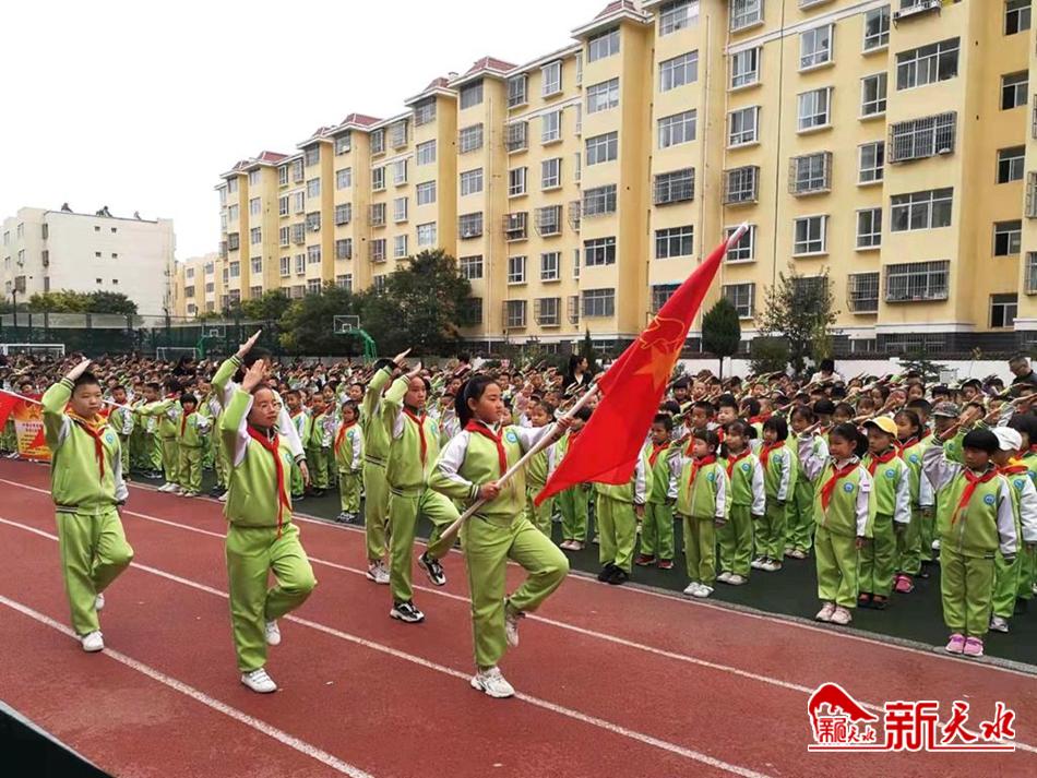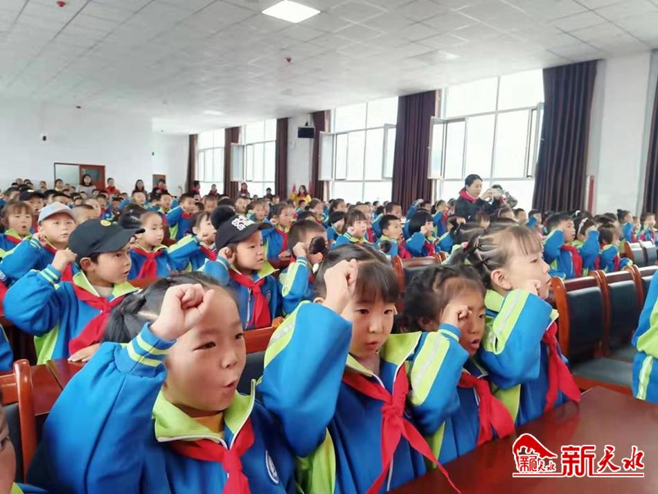 明快的出旗曲奏响,出旗手迈着坚定铿锵的步伐进入会场,鲜艳的红领巾在胸前飘扬,星星火炬在队旗上闪光,全体少先队员面向队旗庄严敬礼。首先,为新队员授红领巾、入队宣誓,老队员重温入队誓词,铮铮誓言响彻全场。随后,学校大队辅导员为新成立的少先队授队旗,合唱少先队队歌。队歌嘹亮,萦绕会场,唱出了少先队员的激情与理想,表达了队员们不忘肩负的使命,争做更好的自己,秉持少先队员的作风,用实际行动为少先队组织增光添彩。 此次活动进一步坚定了少先队员们感党恩、听党话、跟党走的理想信念,教育广大少先队员牢记习爷爷的教导,沿着革命先辈的光荣路程,从小坚定听党话、跟党走的决心,用实际行动让红色基因、革命薪火代代传承,为实现中华民族伟大复兴的中国梦时刻准备着。