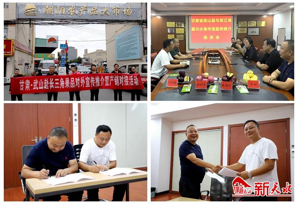 10月8日至12日,武山县考察组先后来到浙江嘉兴,江苏苏州、无锡等地水果市场,通过现场考察、座谈对接、观看专题片、样品展示和发放宣传册页等方式,详细了解当地果品销售和来源情况,以及当地果品市场的供需结构,对武山果品进行了宣传推介和洽谈对接,并与浙江嘉兴水果市场成功签订了销售合作框架协议。 通过宣传推介和洽谈对接,进一步提升了武山果品的知名度和影响力。考察组在宣传推介武山果品的过程中,吸引了不少从事果品销售的客商,他们表示,愿意与武山进行合作交流,实现双赢。