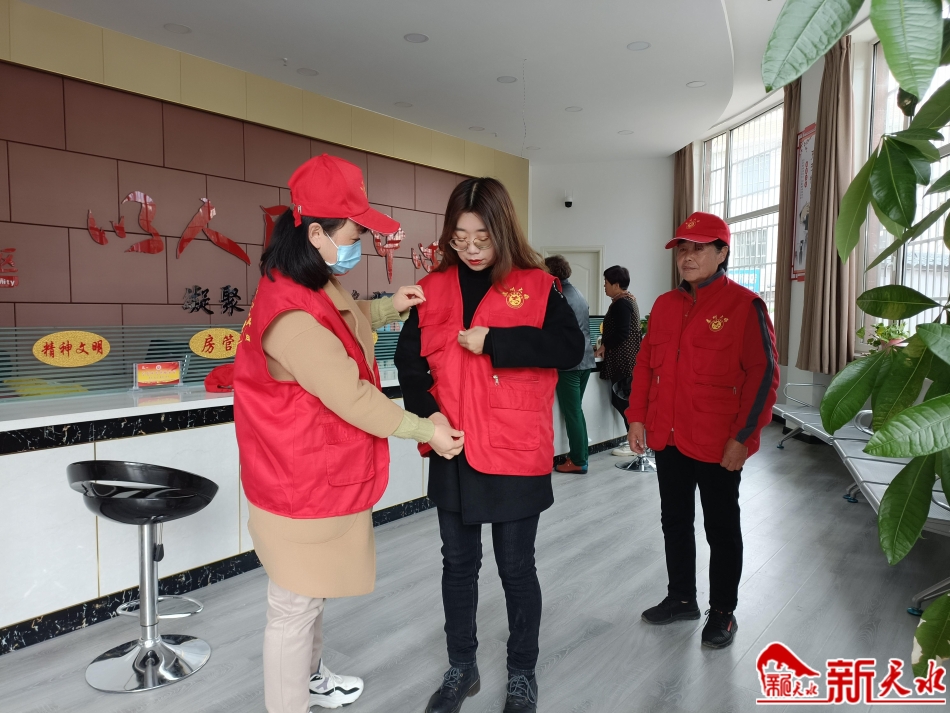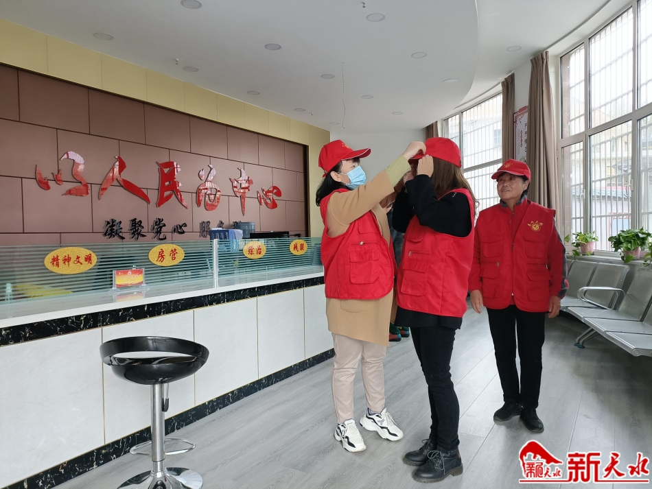 在接到工作任务后,安冬梅在社区的一间办公室里取出了印有“秦州大妈”的“红马甲”和帽子。贾利在快速穿好自己的“红马甲”后,就过来帮我穿戴。