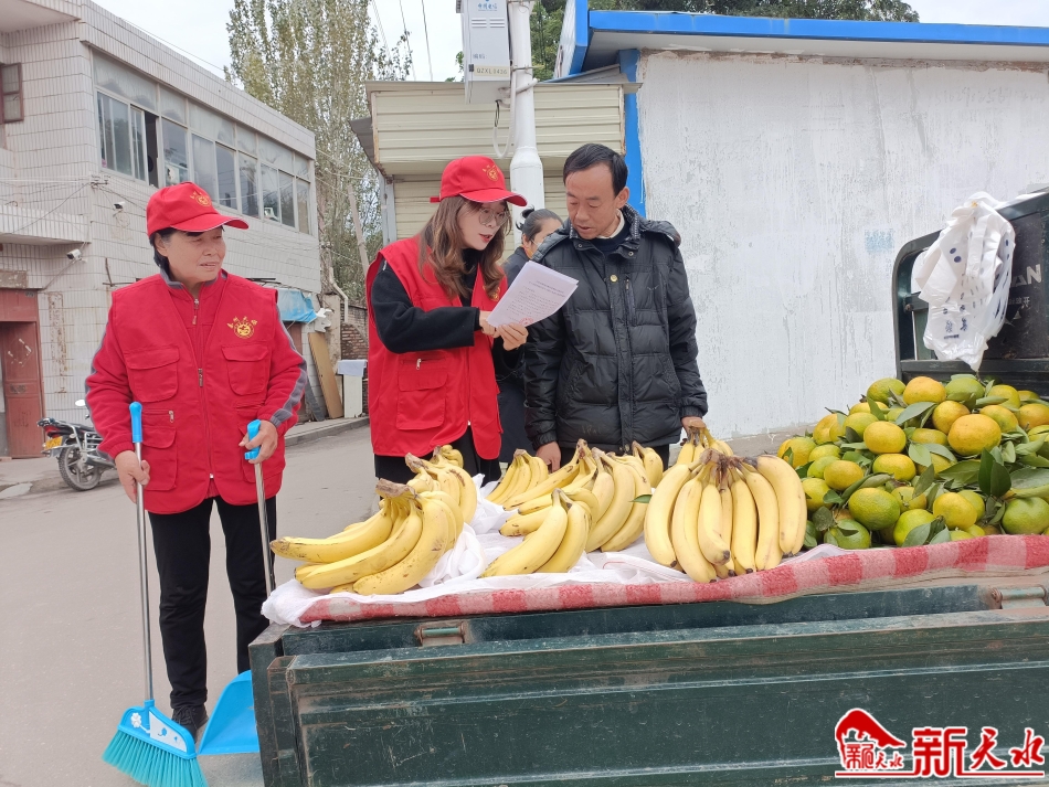 就在此时,一位在三轮车上临时售卖水果的小摊贩正在吸烟,于是我拿着宣传单上前对其进行宣传,这位师傅很是配合,他告诉我,他是附近的村民,姓王,会不定期在社区门口卖些水果。