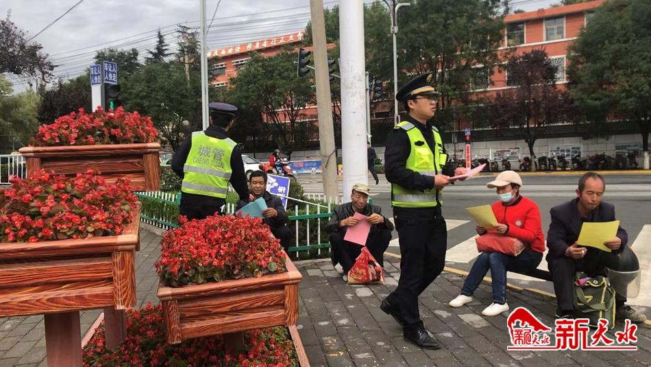 新天水讯【特约通讯员 王敏】近日,秦州区综合执法局西关中队对秦州区双桥丁字路口马路两旁的“零工市场”进行宣传取缔。