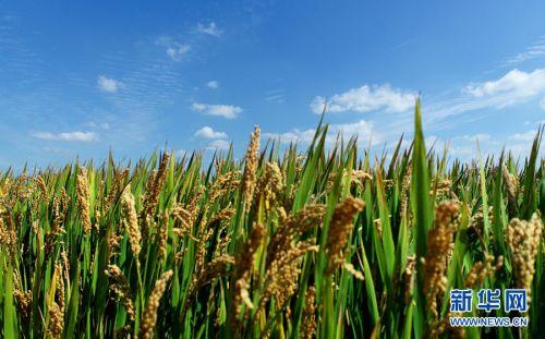 安徽省合肥市庐江县白湖镇现代农业示范基地稻谷飘香。新华网发(王闽 摄)