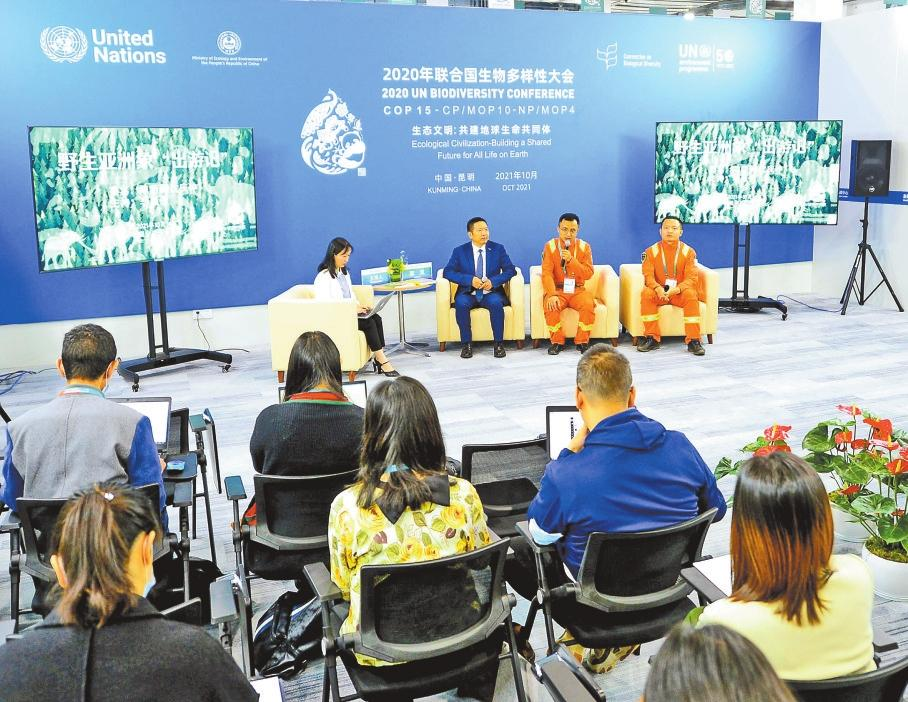 10月14日,在COP15新闻中心举行了一场主题为“野生亚洲象‘出游记’——亚洲象北移南归故事、大象救助、北移大象与森林消防员的奇妙之旅”的云采访活动。来自云南省森林消防总队,负责亚洲象搜寻监测任务的杨翔宇、张雄、张斯捷分享了“追象”过程中的精彩故事,云南大学生态与环境学院教授陈明勇、云南西双版纳国家级自然保护区生态旅游管理所所长沈庆仲从亚洲象保护方面提出了自己的建议和主张。