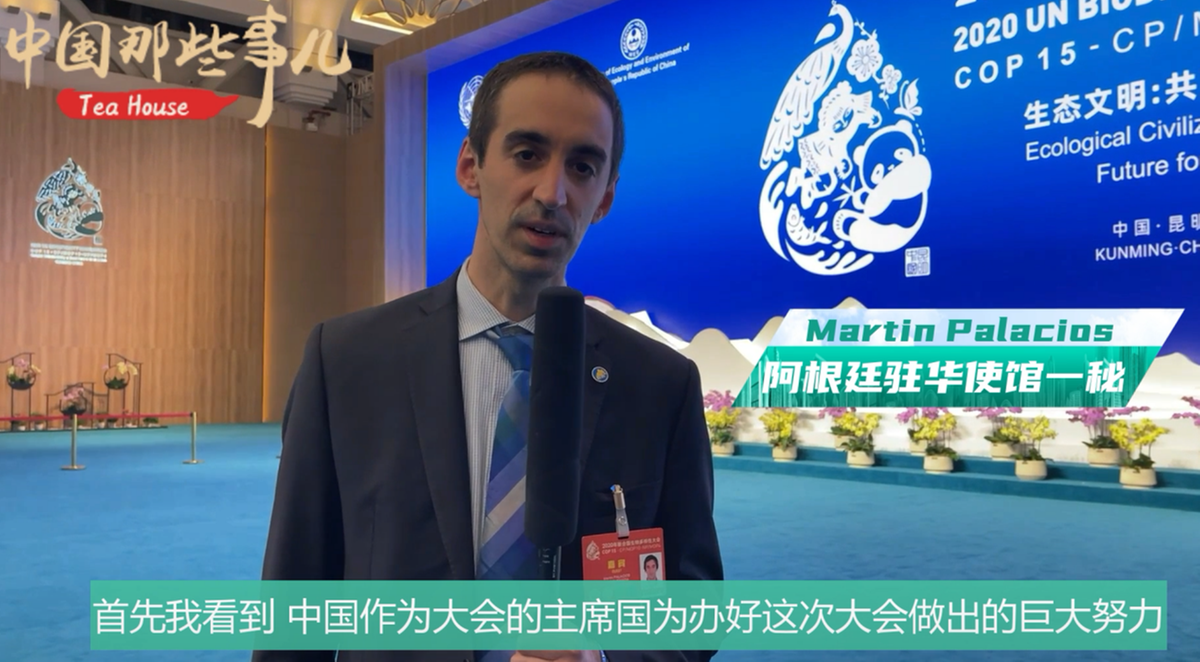 阿根廷驻华使馆一秘Martin Palacios称赞中国作为大会的主席国为办好这次大会做出的巨大努力,他看到此次大会在场参会代表多达1000多名,还有141个国家和国际组织超过3000名代表线上参会,这不仅说明中国成为了当今世界举足轻重的角色,更重要的是对于中国的意义。他相信这将有助于推动形成将在明年4月公布的“2020年后全球生物多样性框架” 。