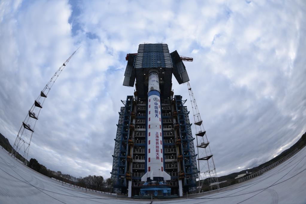 图为此次发射“羲和号”前的长征二号丁火箭。(航天八院提供 摄影:孙公明)