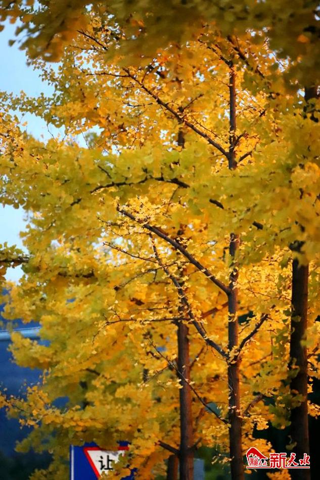 10月17日,连日的阴雨天气过后,清水又见久违的蓝天。深秋时节,漫步清水街头,微黄的树叶在秋阳的映射下金灿灿的,如同一幅油画。 在东部新城区香港路、轩辕大道、全民健身公园,金灿灿的银杏、红枫被秋色晕染,黄色、红色一路相送,一派浓浓的秋意。