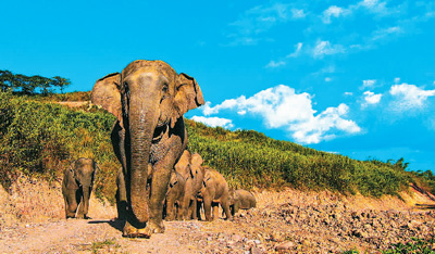亚洲象是亚洲陆地上最大的动物。图为2021年1月在云南西双版纳拍摄到的亚洲象群。随着中国生态保护力度增强,种群数量明显增长。郑 璇摄