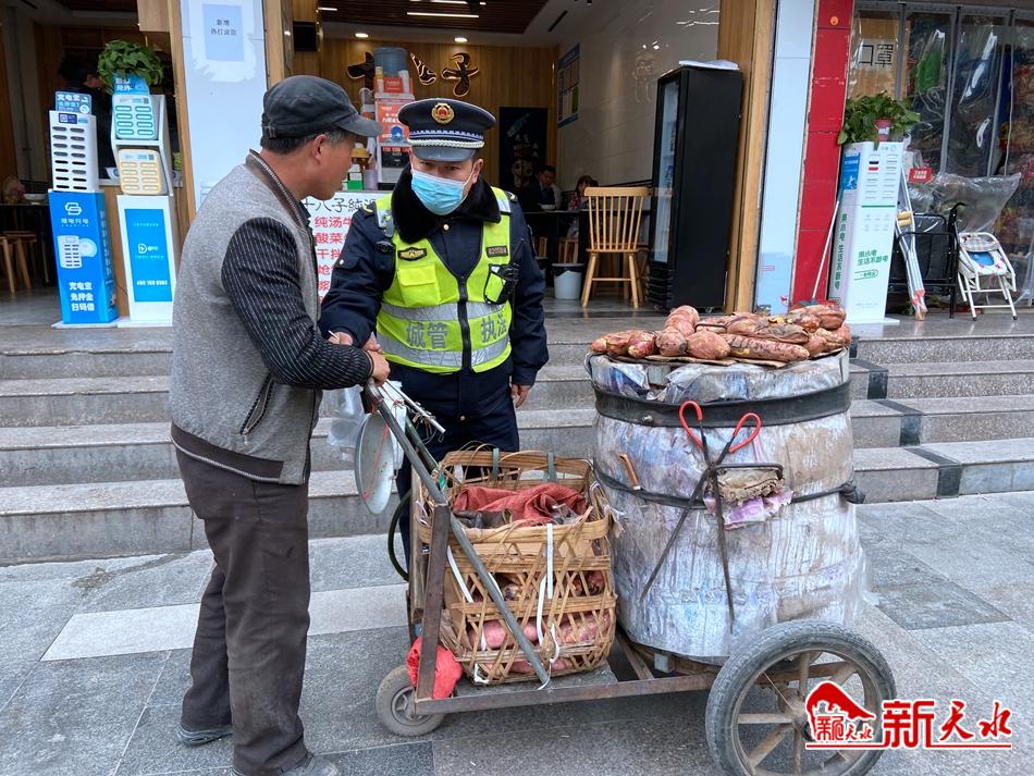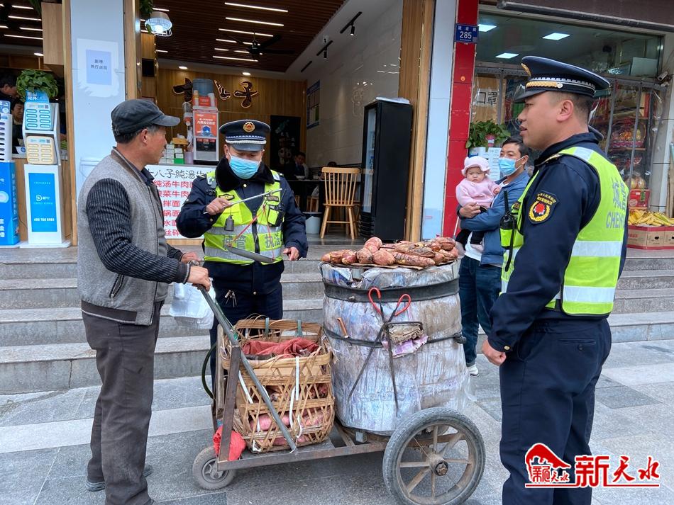 “您这样占道经营不但影响他人出行和城市形象,最重要的是不利于您长期经营……”经执法队工作人员与一名较固执的经营者耐心沟通,一番劝导后摊贩表示理解并支持执法工作。