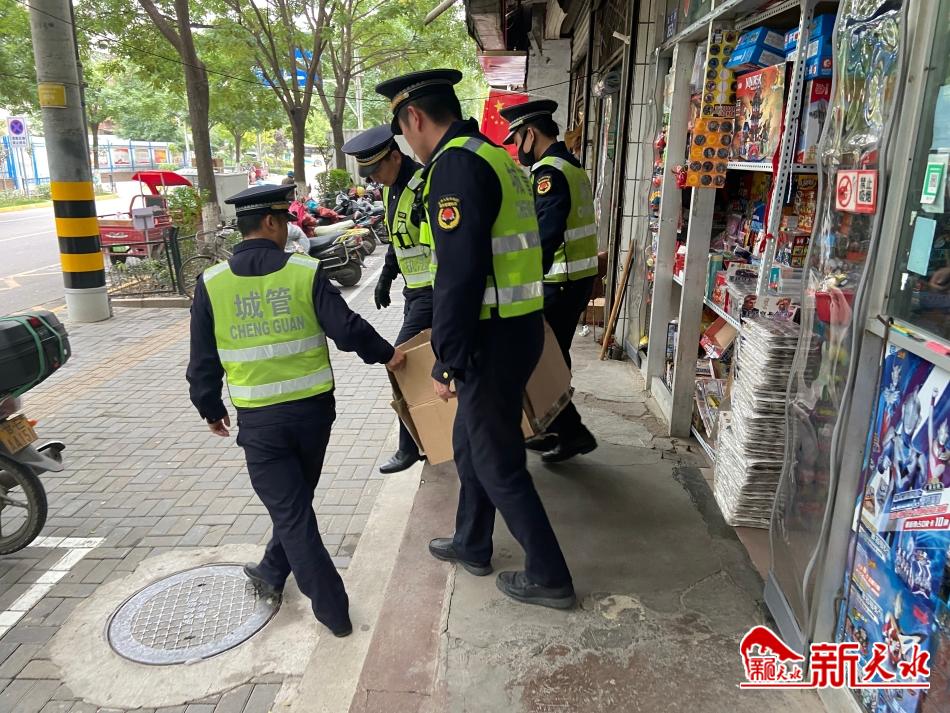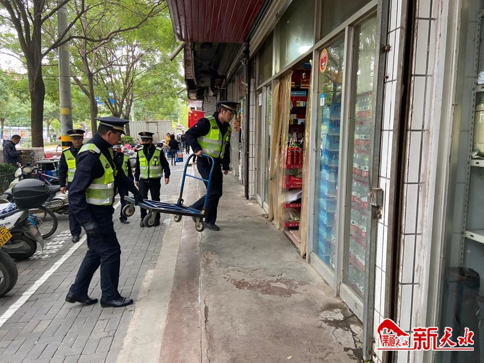 在言语劝导后,执法人员便和店家一起整理收起杂物,挪出公共区域把路还给市民。不一会儿,新华路就变的整洁而通畅了,而这仅仅只是城管执法人员日常工作的一个小缩影。