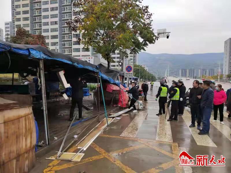 秦州区综合执法局七里墩中队拆除和谐家园临时马路市场