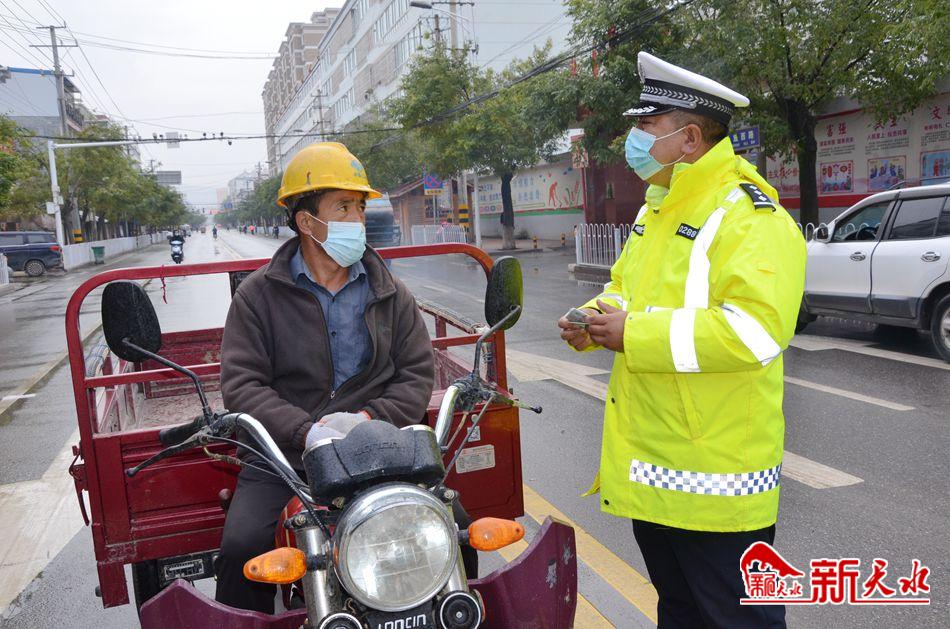 “大叔请戴好口罩的同时,也戴好安全头盔!”城区中队马旭一直这样劝说着。