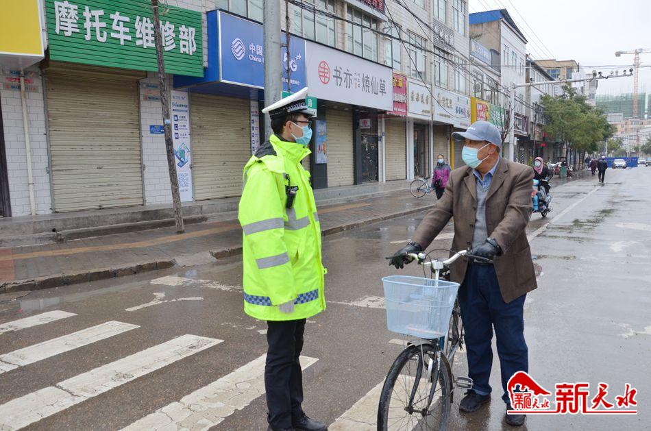 交警马东来组在城区一边巡逻, 一边喊话道:“请大家按照县疫情防控期间交通管制的要求,今天没事尽量不要外出,配合疫情防控工作!”