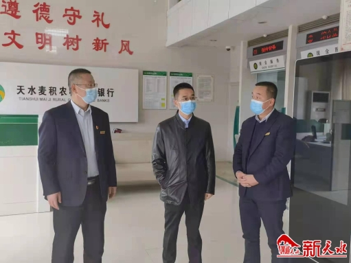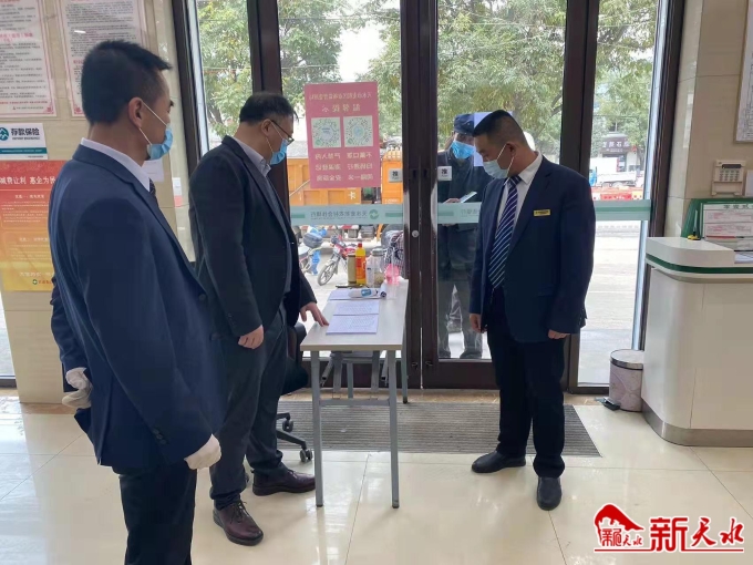 新天水讯 麦积农合银行领导班子成员近日分组深入基层网点,对营业厅来往人员登记、体温检测、消毒消杀、防疫宣传、值班值守、安全排查等各项疫情防控措施进行了检查。