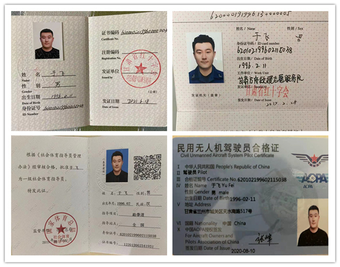 “消防文员于飞”这个称呼是他的微信名称,也是大伙最熟悉的身份。除此之外,他还有着众多不为人知的头衔:国际潜水协会PADI 进阶水域潜水员、中国民航AOPA无人机驾驶员、中国红十字会救护员导师……工作中,他是消防监督检查的小能手、接待来访群众的热心汉。生活中,他是一名真正的全能型公益志愿者。