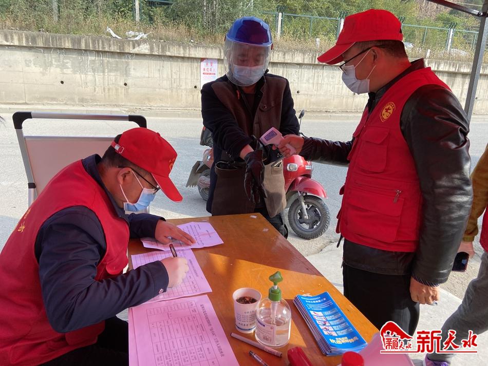 新天水讯【记者裴婷婷】“天气那么冷,志愿者们白天晚上不辞辛苦地给我们守护安全,真得给他们好好点个赞!”10月29日,在麦积区“三无小区”农具厂家属院门口的值守点,看到身着红色马甲的志愿者认真负责地给居民们登记、测量体温、查看健康码、行程码,不少小区居民感慨地说。