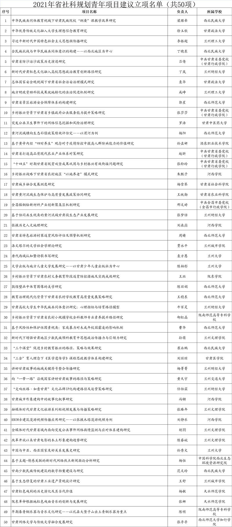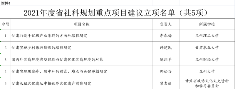 2021年甘肃省哲学社会科学规划项目拟立项名单公告