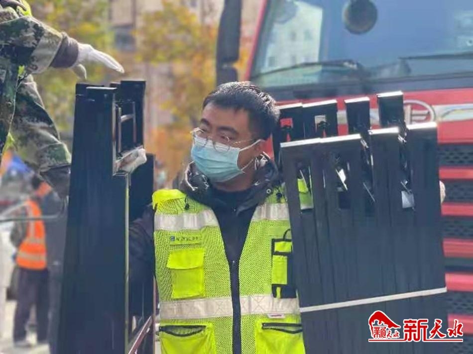 深秋,再次突袭而来的新冠肺炎,让甘肃天水按下了暂停键。11月1日,在天水市麦积区成纪新家园疫情隔离点,由中建二局二公司天水秦州万达项目组织突击队,正在帮助援建改造疫情隔离点设施。