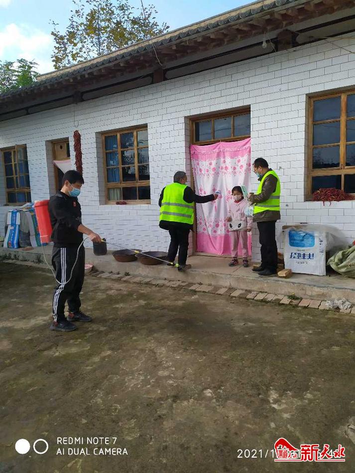 何小林在村里帮扶已近七个年头,高龑来的时间短,但真心实意为民办实事,在村民心中他是一位好书记。疫情初期,他们坚持24小时在岗。为了让村民尽快将苹果采摘和出售,3名队员全天候执勤,高龑主动承担夜间值守。 帮扶队通过大喇叭、微信群宣传防疫政策,入户摸排重点地区返村人员,上门介绍科学防控方法,引导村民不聚集、少流动。在村子的主要出入口设置关卡,“铁面”示人,违反规定出行坚决劝返。 每天对村里主要道路全面消杀,何小林腰部有伤,高强度的工作让他饱受折磨。走访特困供养户、低保户,慰问留守老人妇女儿童,了解需求和思想动态,安抚情绪,提供口罩等必要防疫物资。高龑每天操控无人机全村巡逻,对聚集群众拍照取证,及时劝阻疏散。