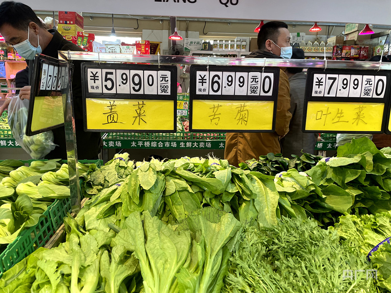 刘通说:“也有一些蔬菜生长期比较长,要想把供应补充上来用的时间也比较长,所以现在价格还处在高位,使得市场现在的价格和去年同期比仍然有将近50%的涨幅,和去年同期比涨幅还是相对比较高的。”