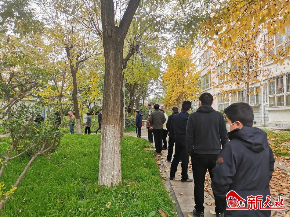 “各位住户,请抓紧时间到青蛙广场排队做核酸检测!”11月5日上午8时,天河家园小区里的“小喇叭”又响了起来。小区的青蛙广场和蝴蝶广场上,前来做核酸检测的市民整齐有序地排着队。“这些志愿者又要值守,又要维持核酸检测点的秩序,怕有人听不到,还要负责用小喇叭喊话通知,起早贪黑的,真是辛苦。”正在排队的秦州区七里墩社区天河家园小区居民夏小慧说。
