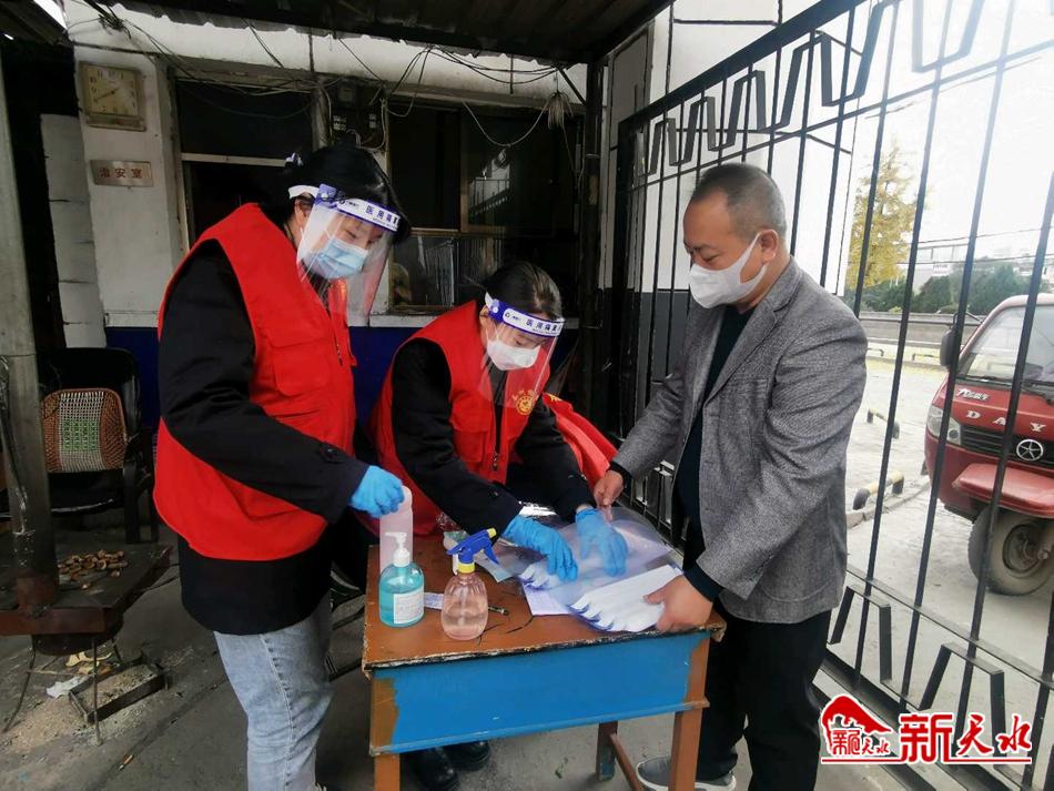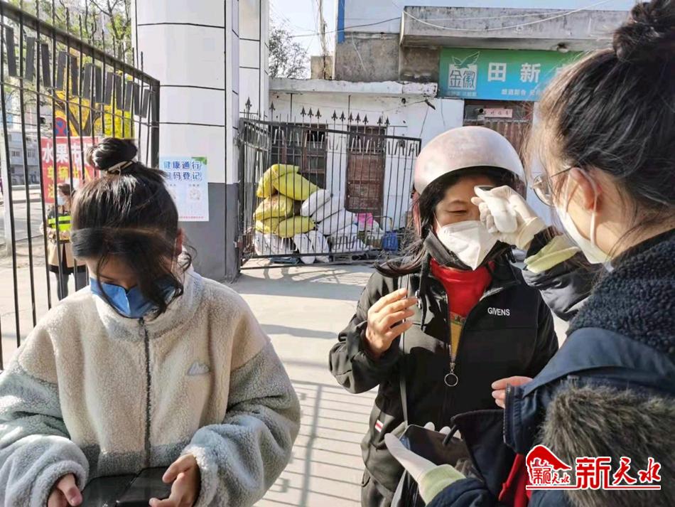 “您好,请您配合测一下体温,出示一下您的健康码。”秦州区罗玉沟水果批发市场疫情防控值勤点,身穿红色志愿服的秦州区人民检察院值勤干警手拿测温枪,耐心细致给出入人员测量体温、登记个人信息等。