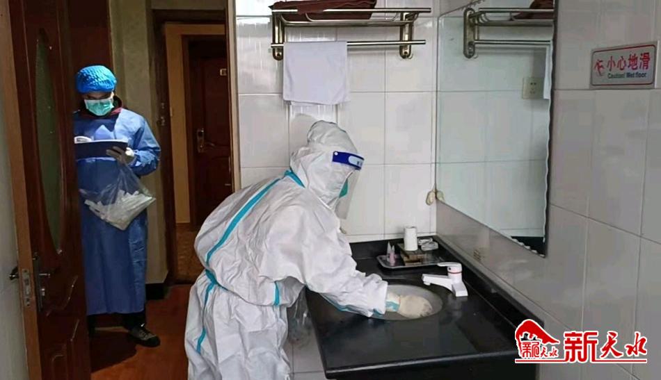 在对大地湾宾馆的监测中,采样人员对后厨的食品外包装、刀具、案板、冰柜、地面、垃圾桶等处进行物品表面多点涂抹采样,完成后迅速放入已经编好码的采样箱中,样品在第一时间送到疾控中心PCR实验室进行检测。当日采样组抽取了大地湾超市、大地湾宾馆、汇丰医药、同泰医药超市、家福乐超市、污水处理厂等6个检测点,共采样65份,其中人员样品10份,环境样品55份,结果均为阴性。