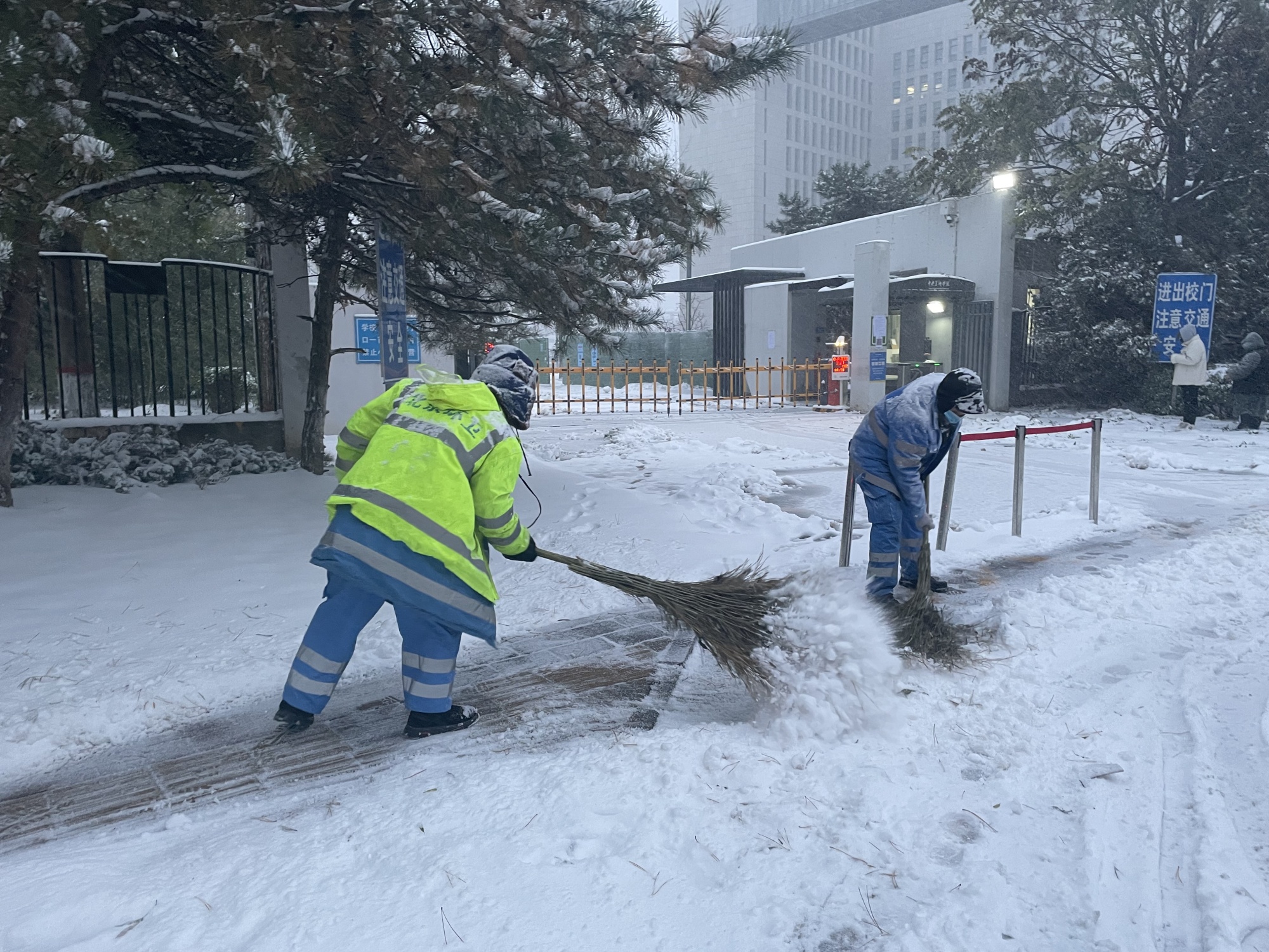 降雪前,北京环卫集团强化扫雪铲冰作业工艺的实操演练,完成对京内3500余名一线作业人员的培训,确保环卫职工能够规范高效作业。同时结合当前疫情防控形势,要求作业人员按照标准佩戴防护用品,所有作业车辆均按要求进行彻底消杀。