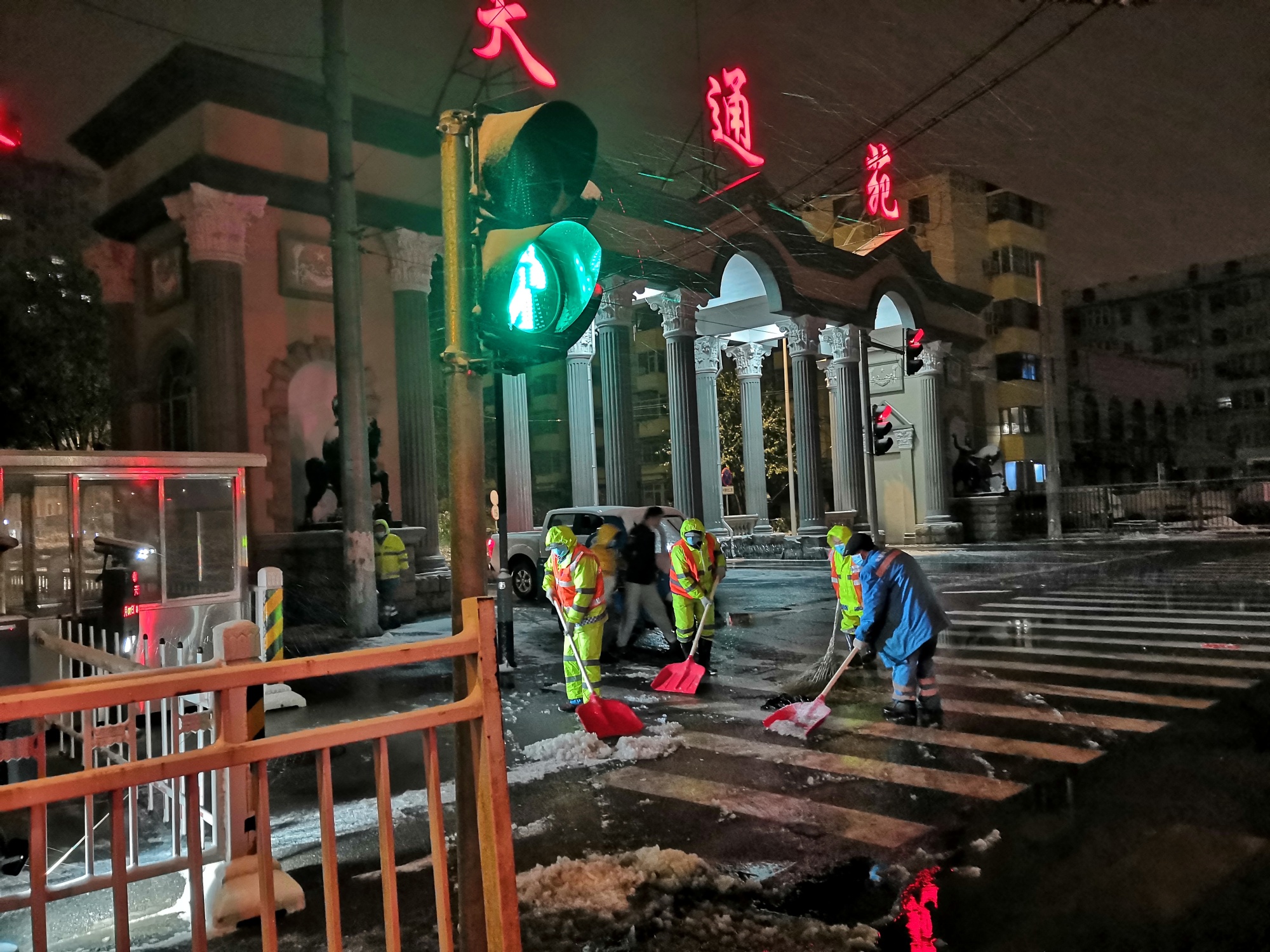 北京昌平环卫在天通苑地区进行人工除雪作业(央广网发 北京环卫集团供图)