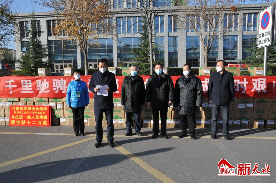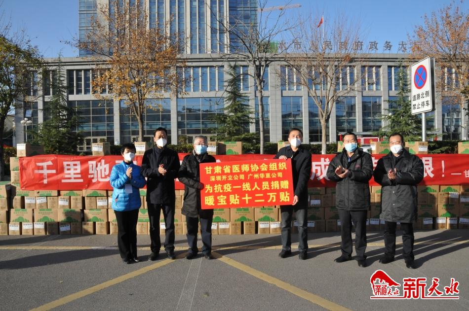 新天水讯【记者 童强】11月7日,正当疫情防控进入关键时期,恰逢最强寒流来袭,甘肃省医师协会协同两家爱心企业为我市捐赠了价值10万余元的12万贴“暖宝贴”,全部用于在我市开展核酸采样、转运、检测等一线医护人员和工作人员。