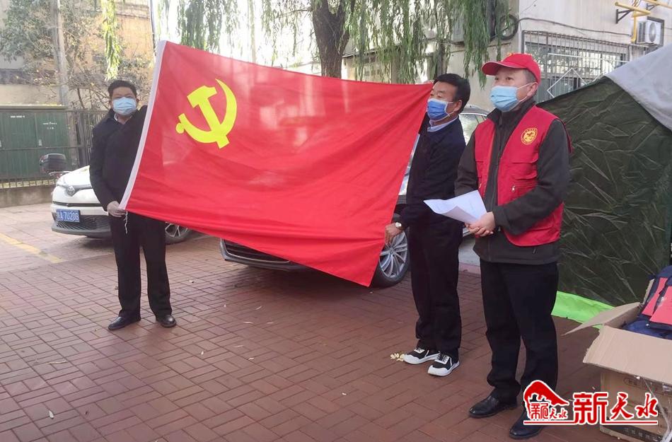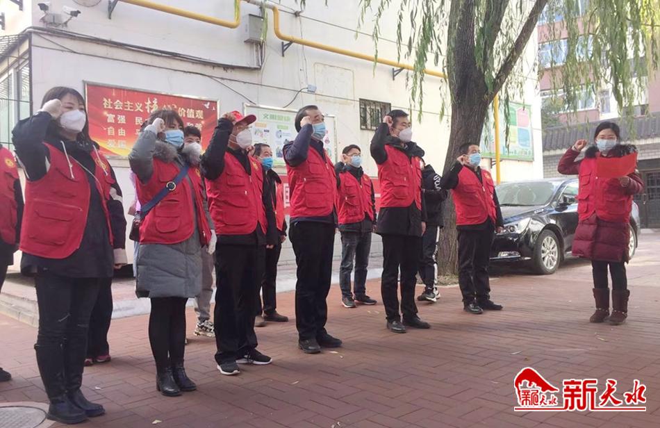 新天水讯【记者王晓华】11月7日上午10时,在秦州区中华东路小区,天水市民政局成立了临时党支部,党员志愿者对着鲜红的党旗再次重温了入党誓词,大家表示将进一步发挥党支部战斗堡垒作用和广大共产党员的先锋模范作用,构筑起红色防线,守牢社区小区疫情防控第一道防线,带领群众夺取疫情防控斗争的胜利。