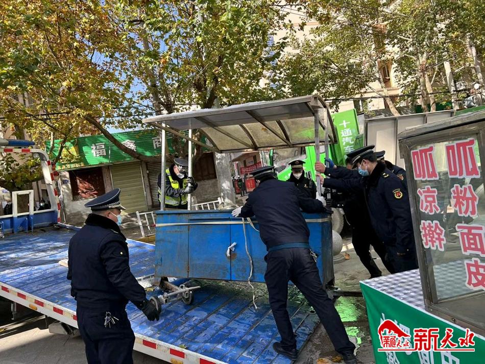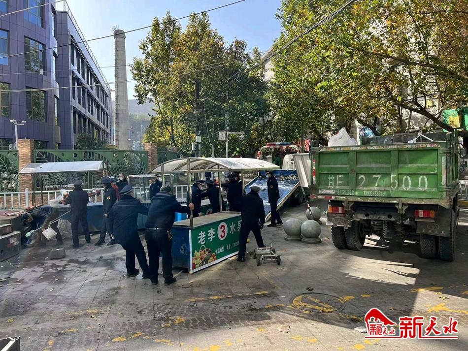 新天水讯【通讯员 靳雪萍】11月7日,秦州区执法局玉泉中队联合环卫部门,对东团庄市场进行集中整治。
