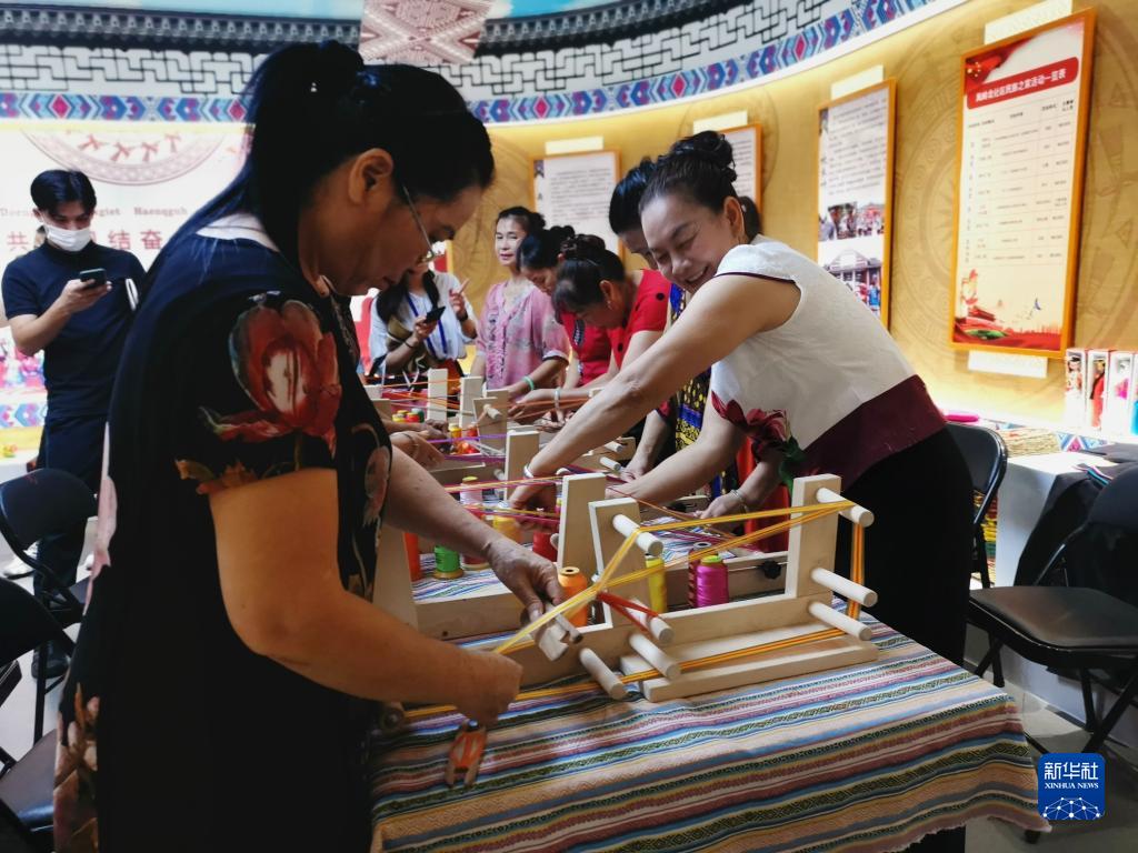 走进广西南宁市青秀区凤岭北社区民族之家,10多位居民正在用简易织机制作壮锦。“社区每月都会举办绣球制作、十字绣、剪纸等活动,我在这里生活了8年,早已把社区各民族同胞当成家人。”壮族居民谭艳春说。