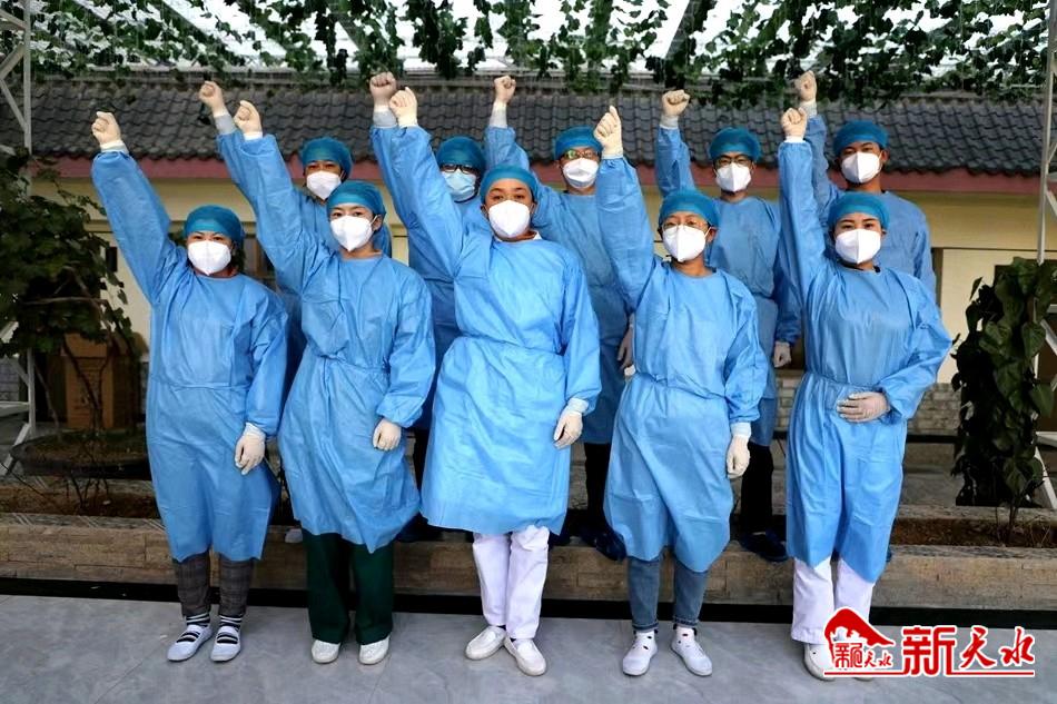 王瑜芳是县医院的一名护士长,这是她第四次走进这个特殊“战场”隔离点,她有着隔离点工作的经验,知道隔离点的运转流程,环境消杀,垃圾处置等工作,她主动请缨来这里奋战,因为她是一名党员更是一名医护人员,这是她的使命。在这里,微信视频电话成了她和家人联系的唯一方式,她家有两个小孩,还有一位80岁的公公,她进入隔离区工作后照顾两个小孩和80岁公公重担就落到了他老公身上,因为每次长时间的离开让孩子害怕了妈妈的离别,自己也很愧疚没能尽到照顾老人的责任,这次出来小女儿说妈妈又要走了,好几天生气不接她的电话,直到今天她打视频,女儿才开始和她说话,还问妈妈你什么时候回来,我想你了,爸爸不会给我扎头发,听到这里王瑜芳泪流满面,泣不成声,为了不让孩子看到自己哭,匆忙挂断了孩子的视频。舍小家,为大家。这里的10名医护人员用责任和担当守护着每一位隔离人员。