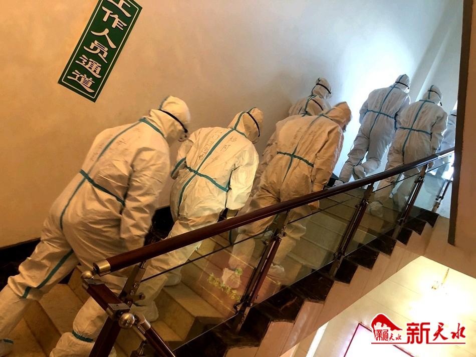她们身着厚厚的防护服,头戴护目镜,每天近距离为隔离人员测量体温,采集核酸样本、采血,还要负责送一日三餐、清理生活垃圾、消杀生活区,和隔离人员沟通,给他们提供心里疏导,还有来自各界人士的关心,让隔离人员很安心。 送物资,送饭是她们最艰苦的一项任务,每天他们把送来的物资,水果分开分匀,每人拿好几包,然后爬楼梯,挨个敲门,送进去,这不仅消耗医护人员的体力,更考验医护人员的细心程度,每天的体温测量和核酸检测不敢有丝毫懈怠,刚开始的几天大家绷紧神经工作到天亮,这几天工作到凌晨两三点以后开始休息,每天晚上还要轮流值班。