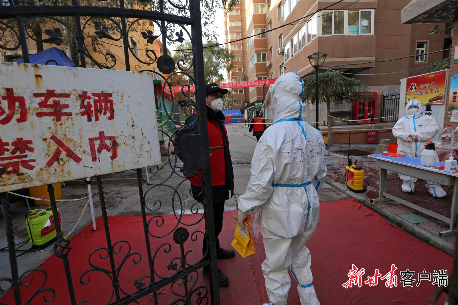 穿上防护隔离服在云祥封控小区执勤点工作的张瑜。掌上兰州·兰州晨报记者 田蹊