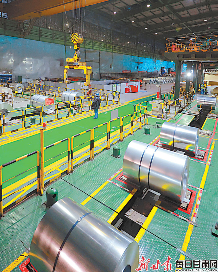 酒钢碳钢薄板厂镀锌生产线上工人正在紧张作业。今年,酒钢集团公司碳钢薄板厂新建一条45万吨/年、厚度2.5mm-6mm热轧板酸洗镀锌铝镁生产线。新甘肃·甘肃日报通讯员张志方