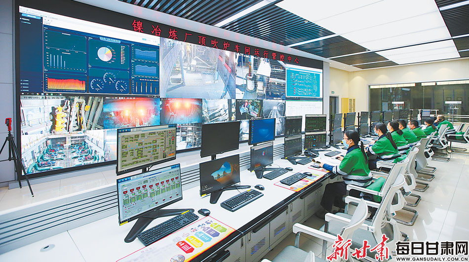 镍冶炼厂顶吹炉车间运行管控中心值班人员在认真作业。今年,金川集团公司镍火法系统集成创新改造项目——顶吹炉产能提升及技术改造项目正式启动。这项由金川集团自主创新的国际先进技术,使金川集团公司镍冶炼实现了高端化、绿色化、智能化。新甘肃·甘肃日报通讯员张俊成