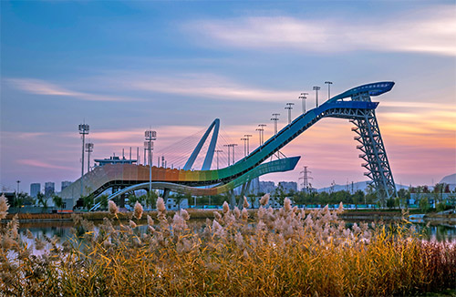 首钢滑雪大跳台背靠由工业冷却塔改造而成的附属建筑,以石景山、永定河为自然背景,将成为北京城市老工业遗址文化与奥运文化完美融合的代表性景观。同时,还将带动周边区域的景观整合,无论是赛时还是赛后,这里都将成为城市西部精彩的景观中心。这种做法得到了国际奥委会和国际雪联的一致肯定,也是北京冬奥会可持续理念的一次生动实践。