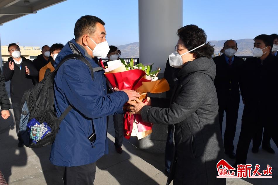 在圆满完成指导疫情处置工作后,11月12日上午,国务院联防联控机制综合组甘肃工作组6名专家返程。市委书记、市疫情联防联控领导小组组长张永霞来到天水南站为工作组专家们送行。 副市长汪小娟一同送行。