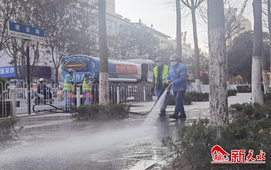 11月12日,秦州区环卫工人在建设路清洗路面。疫情期间,我市环卫工人依然坚守工作岗位,清扫街面,保持城市环境干净整洁。