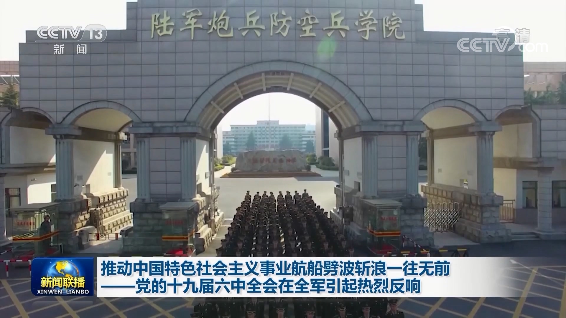 央视网消息(新闻联播)党的十九届六中全会审议通过的《中共中央关于党的百年奋斗重大成就和历史经验的决议》,在全军部队引起热烈反响。广大官兵坚定表示,要更加紧密地团结在以习近平同志为核心的党中央周围,坚持以习近平新时代中国特色社会主义思想为指导,深入贯彻习近平强军思想,坚决听党指挥、勠力奋斗强军、有效履行使命,推动中国特色社会主义事业航船劈波斩浪、一往无前。