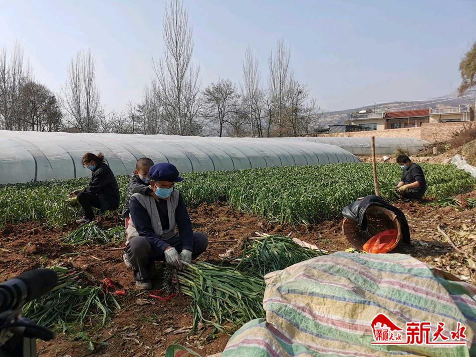 农时不等人,农活干起来 。随着疫情防控形势的好转,农村复农复耕也紧锣密鼓地在田间地头展开。趁着冬天暖和舒适的阳光,洛门镇石岭村村民马军银和家人一起在地里抓紧抢收蒜苗。“昨天在村里的广播中听到今天可以出门下地干活了,今天就赶快来地里收蒜苗。”马军银表示,虽然疫情对今年的蒜苗销售造成了一些影响,但“塞翁失马焉知非福”,说不定市场价格会更好。