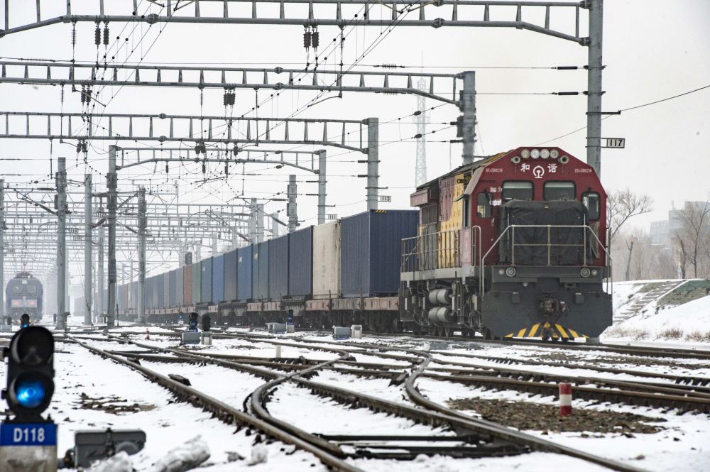 2021年2月7日,一列中欧班列正通过新疆阿拉山口口岸出境。新华社记者 马锴 摄
