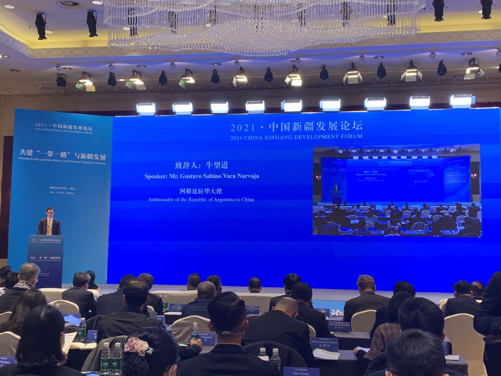阿根廷驻华大使牛望道表示,“一带一路”倡议是一项前所未见的倡议,是真正促进国际合作的倡议,可以促进中国和世界互利共赢。在百年变局和世纪疫情叠加交织、国际和地区形势复杂深刻演变的背景下,这样一个推动融合、促进互利合作的倡议十分宝贵。“一带一路”倡议对阿根廷十分关键,新疆又地处十分重要的战略位置,阿根廷对此十分重视。