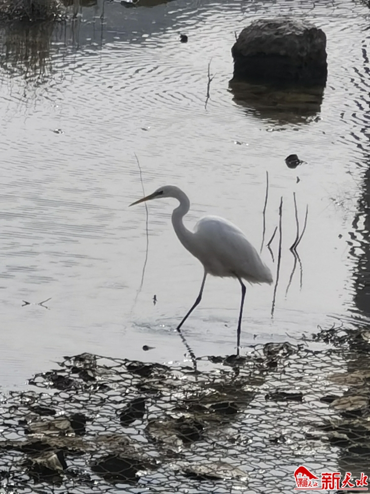 11月17日,冬日暖阳下,藉河风情线孙家坪大桥段,风皱波滟,一只白鹭在水中悠然漫步。它一身皎洁如雪,长腿轻巧曼妙,或引颈长鸣,或低首觅食,溅起水花朵朵,为天水的冬日增添了一道生机祥和的景象。