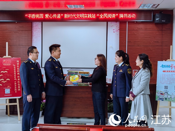 连云港航标处向墟沟街道桃园社区捐赠图书。张晗摄