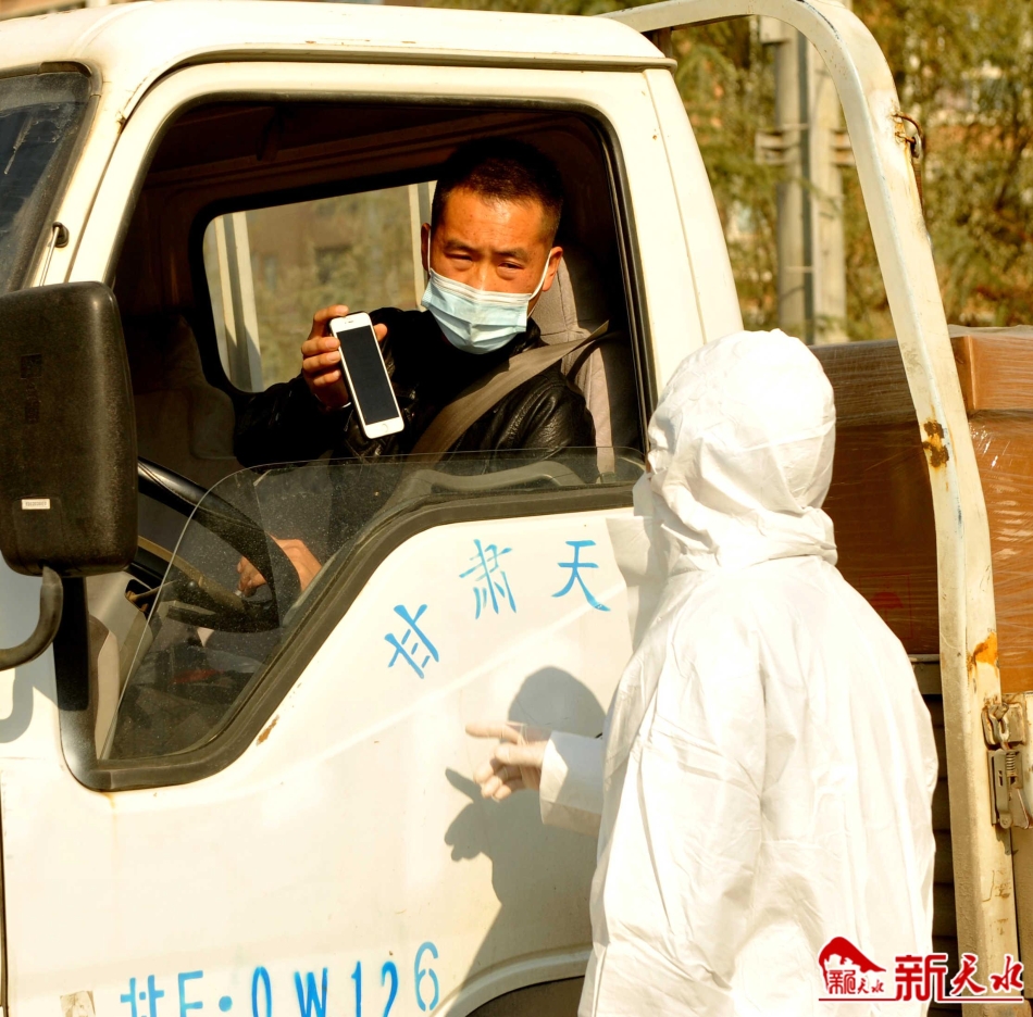 “请驾驶员和车内所有乘坐人员打开健康码、行程码!”11月17日,秦州区泰山路疫情防控卡口,交警对进入市内的车辆进行提醒,然后由卫生疫情人员进行查验。