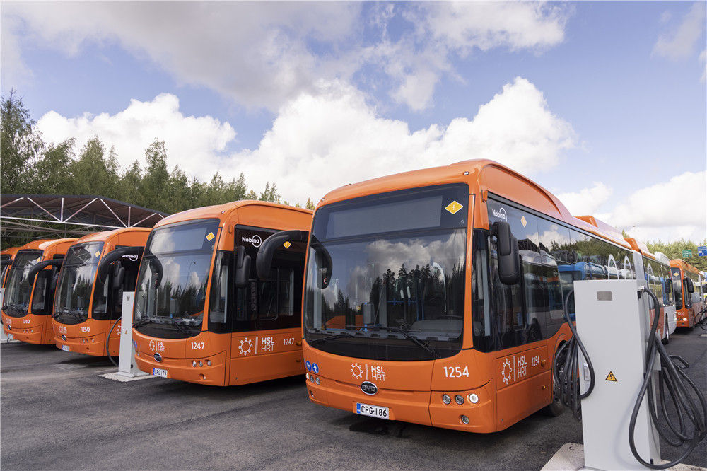 这是2021年8月10日在芬兰埃斯波拍摄的即将投入运营的比亚迪电动公交车。新华社发(马蒂·马蒂凯宁 摄)