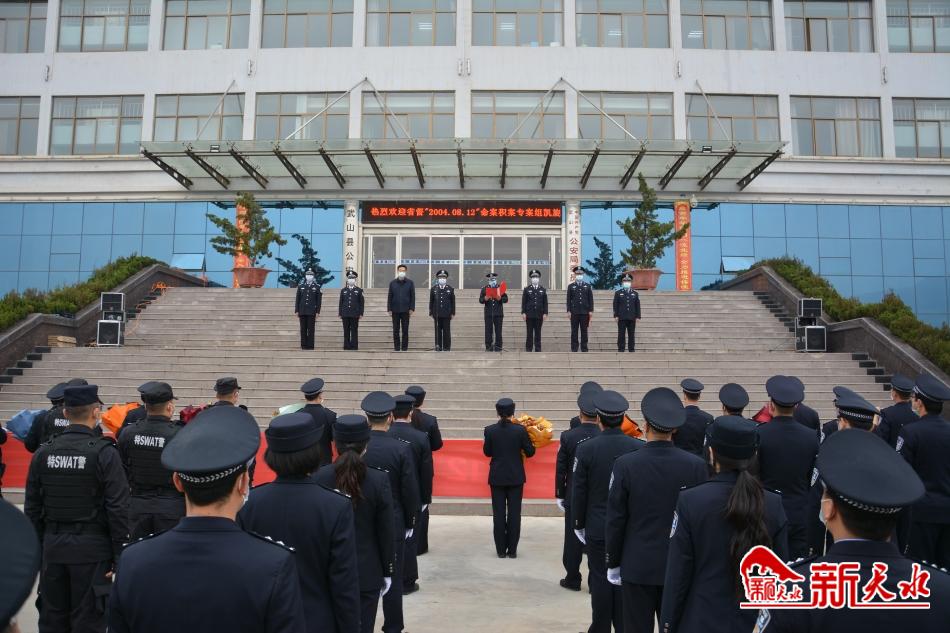 新天水讯【记者蔚军平】11月19日,武山县公安局举行欢迎“2004•08•12”命案积案专案组凯旋仪式。副市长、市公安局局长郭庆祥出席仪式并致辞。